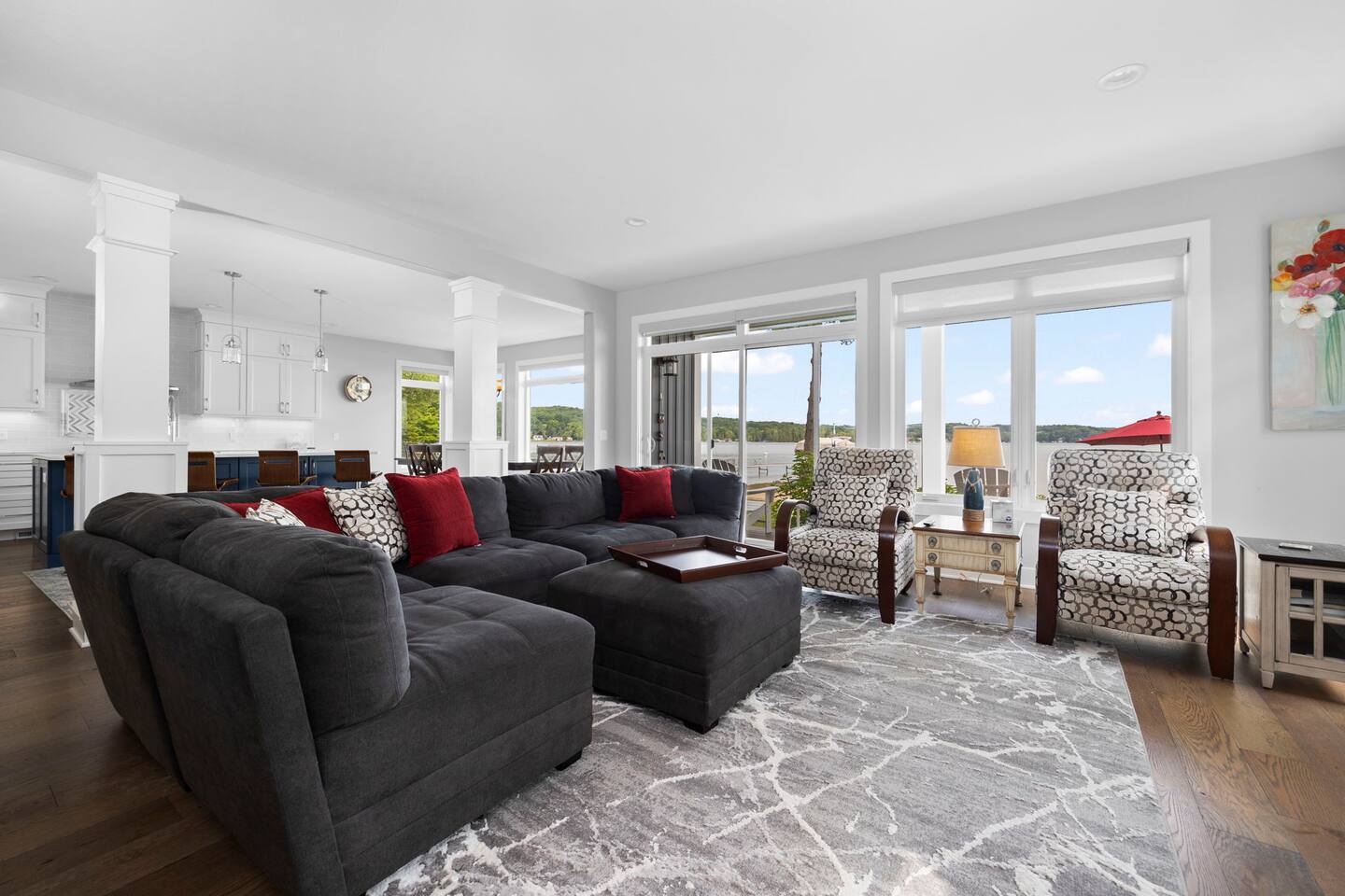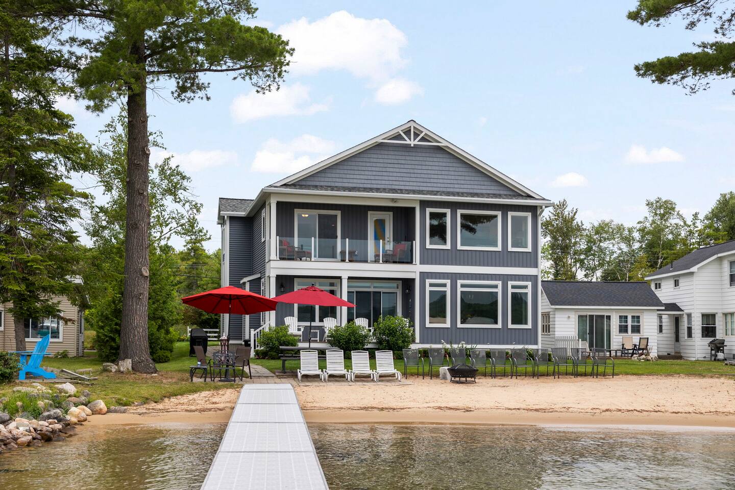 Welcome to your dream beachfront oasis on the stunning south end of Torch Lake Sandbar - with direct walkout access! This luxurious 6-bedroom, 3.5-bath home sleeps up to 17 guests. Step into a gourmet kitchen that’s a chef’s delight, featuring a spacious island and everything needed to create delicious cocktails and cuisine. The open-concept living area allows space for the whole crew to relax.