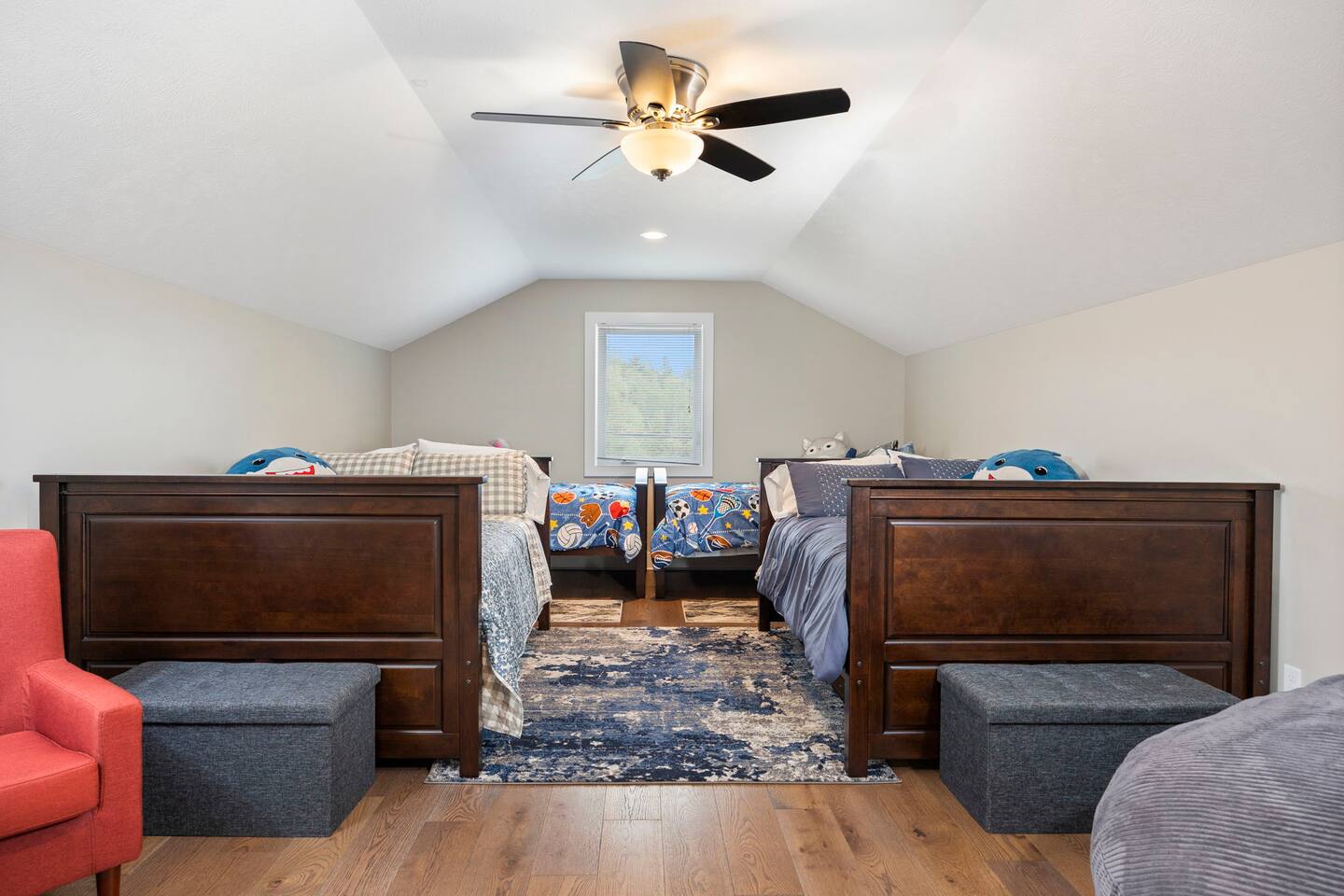 **Will be newly furnished for 2025 rentals** Queen bedroom with en-suite on main floor King master lake facing on 2nd floor with en-suite Queen lake facing bedroom on 2nd floor King bedroom on 2nd floor Queen bedroom with twin on 2nd floor Bunk room with 2 fulls and 2 twins on 2nd floor