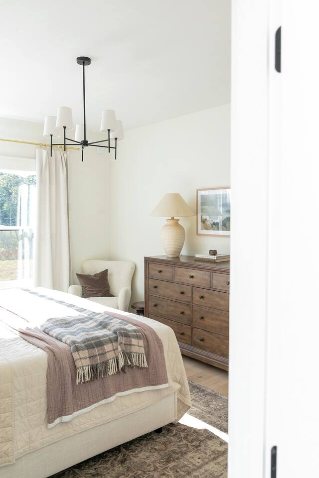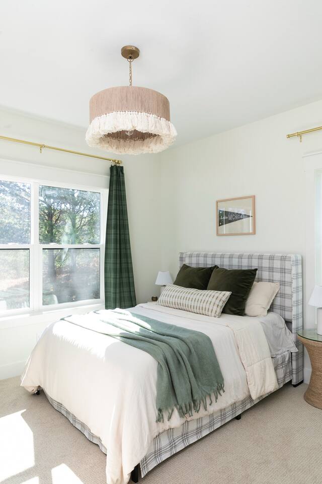 Welcome to your luxury getaway in the heart of Empire, Michigan! Just minutes from Lake Michigan’s stunning beaches and the Sleeping Bear Dunes National Lakeshore, this home offers a serene retreat with easy access to some of Northern Michigan's best natural wonders. Inside, you’ll find spacious accommodations perfect for families or small groups, sleeping up to 6 guests comfortably. Each room is designed with comfort and style in mind, ensuring a restful stay for everyone. BEDROOM ONE: King Bed with ensuite bath - full shower and soaking tub BEDROOM TWO: Queen Bed BEDROOM THREE: 2 Twin Beds Unwind in the open-concept living area with plenty of seating, or cook up a meal in the fully-equipped kitchen. Enjoy coffee on the deck in the morning, and gather around the firepit in the evening for marshmallows and stargazing. Local activities are endless! Stroll down to the sandy shores of Lake Michigan, hike breathtaking trails in Sleeping Bear Dunes, or rent kayaks and paddleboards for a day on the water. You’ll find local dining options, charming shops, and wineries along the Leelanau Peninsula Wine Trail. Traverse City is just a short drive away, offering even more to explore. Whether you’re looking to relax by the lake, hike through forests and dunes, or enjoy local towns, this luxury home in Empire is your perfect Northern Michigan escape!