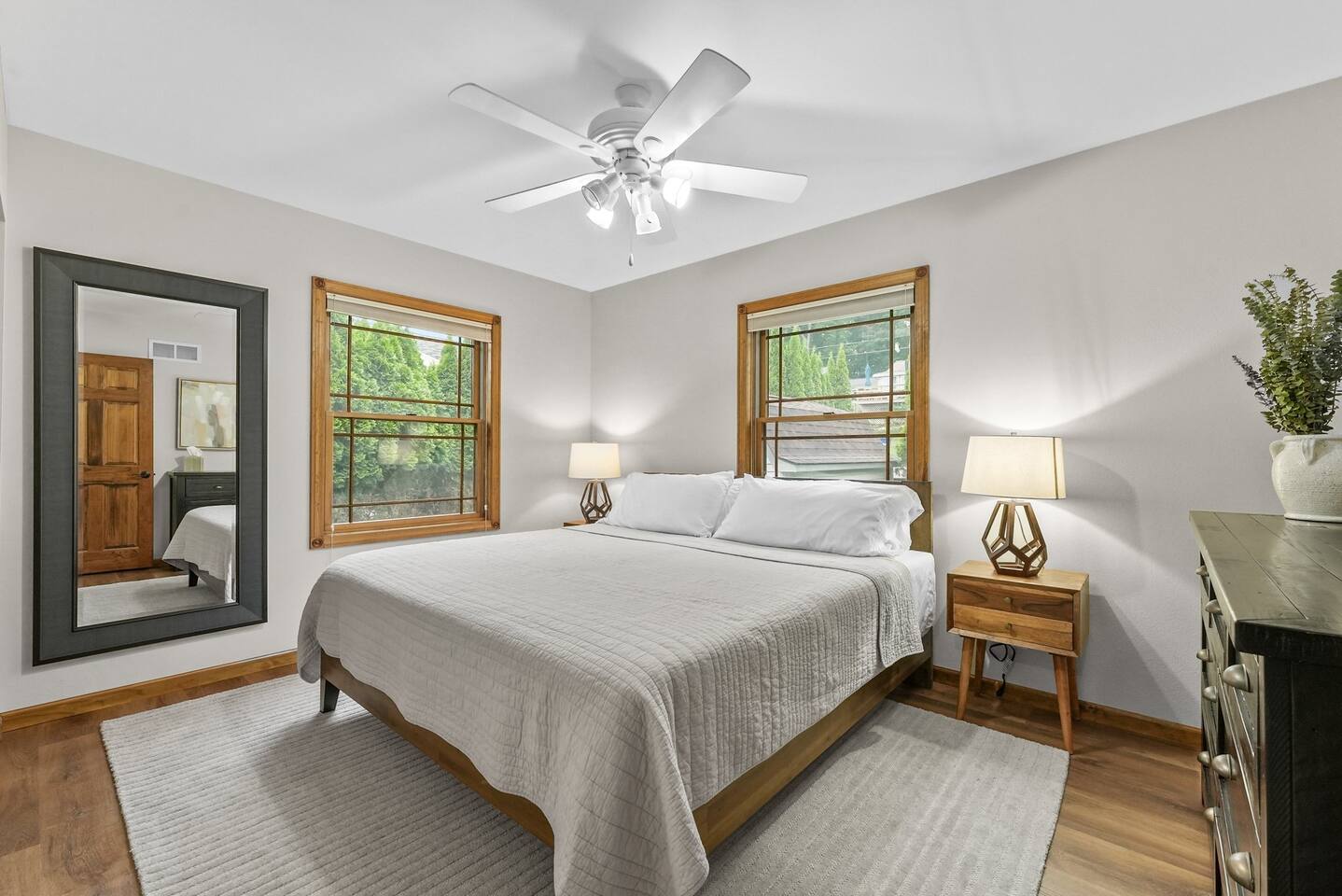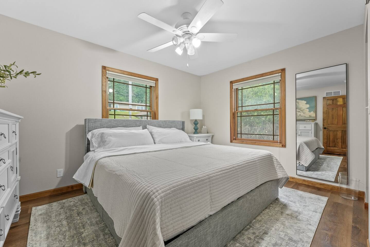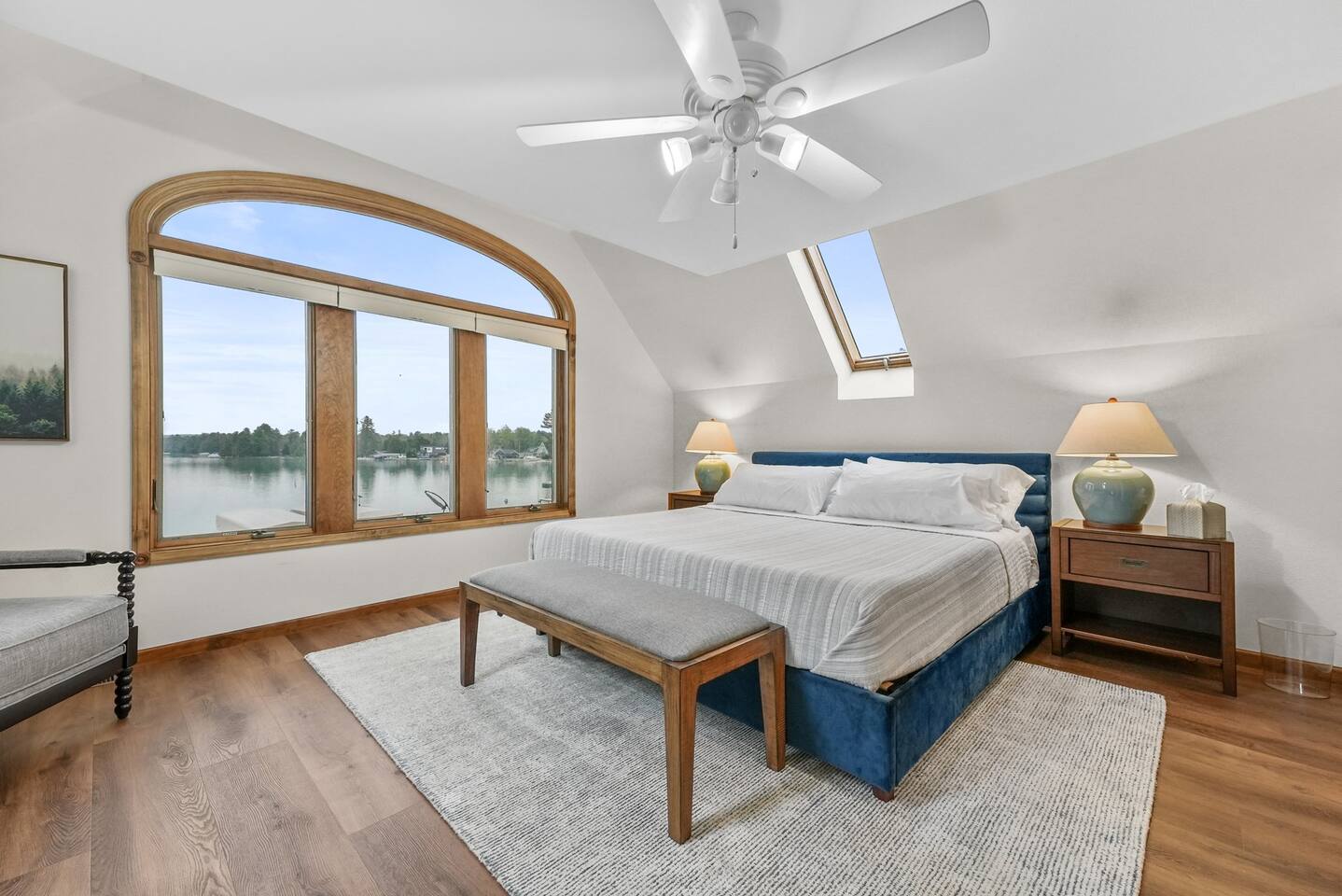 The Space: Bedroom One: Main Floor | King Bed Bedroom Two: Main Floor | King Bed Bedroom Three: Second Level | King Bed Bedroom Four: Second Level | Two Queen Beds Bathroom One: Main Floor | Full Bath with bathtub Bathroom Two: Second Level | Full Bath with shower only Each bathroom is equipped with fresh towels, soaps, shampoos, and conditioners, and hair dryers. Kitchen: A fully equipped kitchen with modern appliances, including a dishwasher, microwave, coffee maker, and all the cookware you need to prepare delicious meals. Outdoor Space: A spacious deck with several different seating areas and a BBQ grill, ideal for outdoor dining and enjoying the breathtaking sunrise over the lake. Our space includes a fire pit for evening gatherings and direct access to the lake for boating, swimming, and kayaking. Amenities: High-speed Wi-Fi Smart TV with streaming services Board games and books for entertainment Washer and dryer Free parking on premises Central heating and air conditioning Guest Access: Guests have full access to the entire cottage and all outdoor areas. We provide 2 kayaks and a paddleboard for your enjoyment. Additional Information: Check-in: 4 PM Check-out: 10 AM No smoking on the premises. No pets. Quiet hours from 10 PM-8 AM Whether you're looking to unwind by the water, explore the great outdoors, or enjoy quality time with loved ones, our lakefront cottage is the perfect place for your next vacation. Book your stay today and create lasting memories at this idyllic retreat! Property/Home owner(s), Property Manager will not assume responsibility for illness or injury that guest(s) may incur while on the property. Property/Home owner(s), Property Manager, is not responsible for the loss of personal belongings or property of the guest. By accepting this reservation, it is agreed that all guests are assuming the responsibility of any harm arising from their use of the premises or other people they invite to this property (per owner’s approval). Owner has the right to ask guest(s) to leave the property if these rules are violated. If legal action is taken against guest(s), the at fault party will be responsible for all law suits/lawyer fees. Any violation of these rules could result in you being charged your security deposit and/or legal action taken.