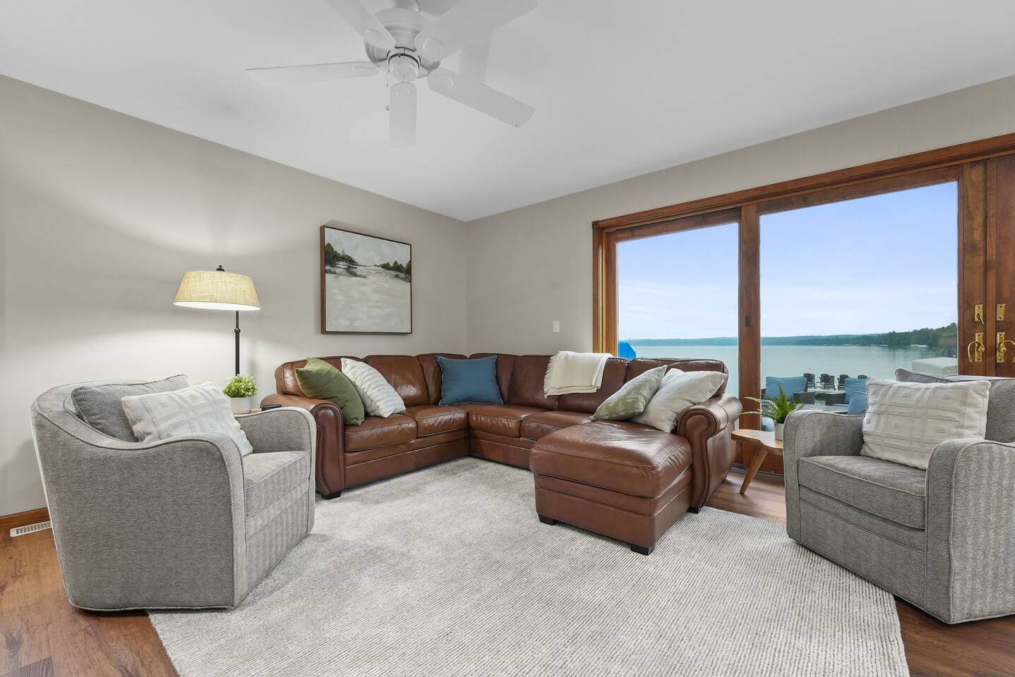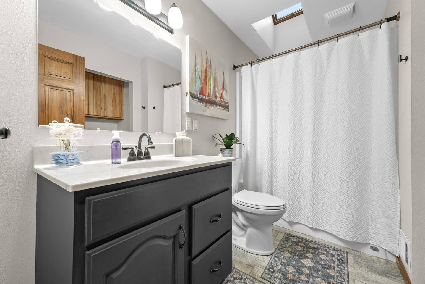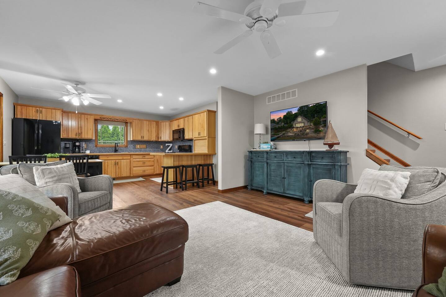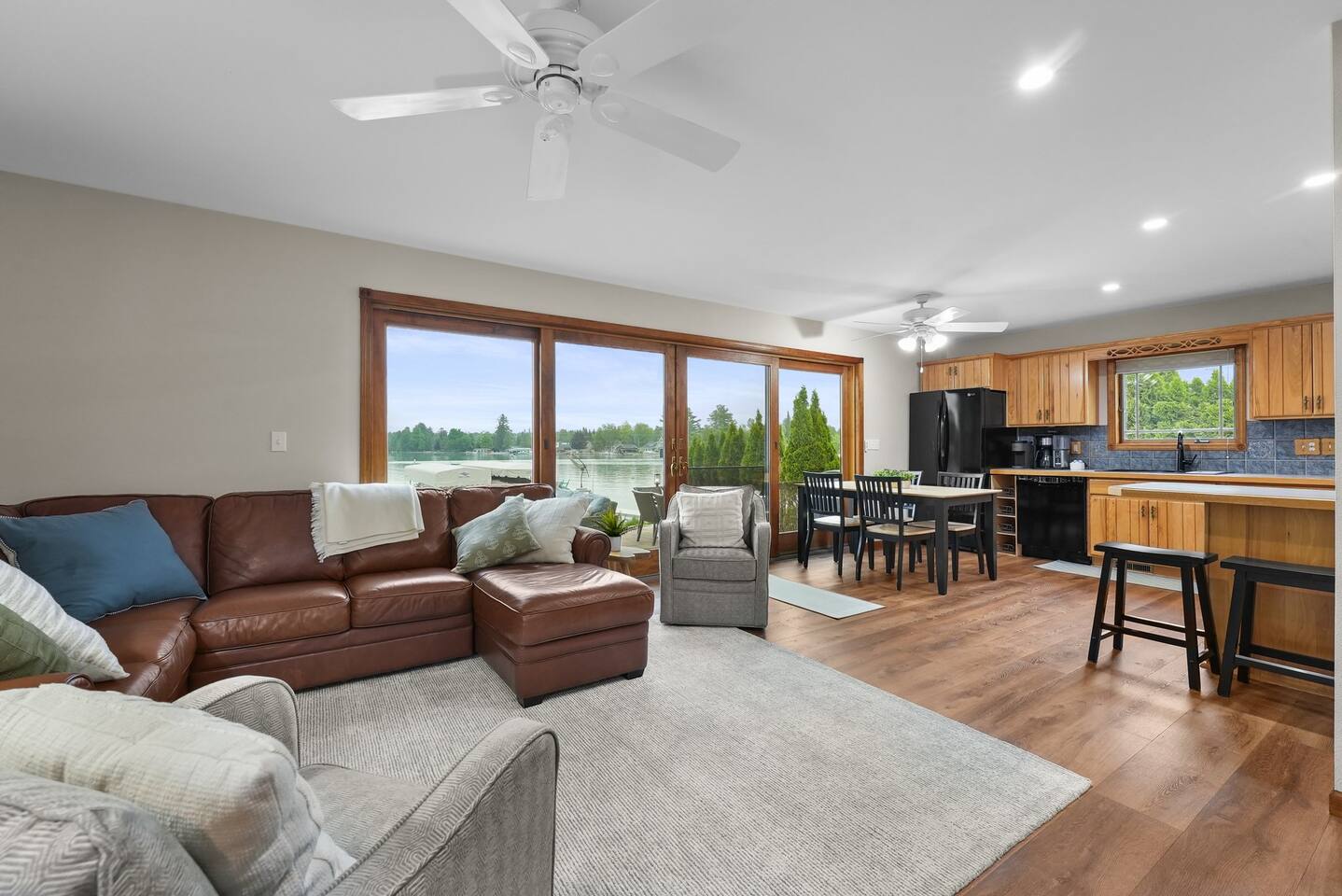 The Space: Bedroom One: Main Floor | King Bed Bedroom Two: Main Floor | King Bed Bedroom Three: Second Level | King Bed Bedroom Four: Second Level | Two Queen Beds Bathroom One: Main Floor | Full Bath with bathtub Bathroom Two: Second Level | Full Bath with shower only Each bathroom is equipped with fresh towels, soaps, shampoos, and conditioners, and hair dryers. Kitchen: A fully equipped kitchen with modern appliances, including a dishwasher, microwave, coffee maker, and all the cookware you need to prepare delicious meals. Outdoor Space: A spacious deck with several different seating areas and a BBQ grill, ideal for outdoor dining and enjoying the breathtaking sunrise over the lake. Our space includes a fire pit for evening gatherings and direct access to the lake for boating, swimming, and kayaking. Amenities: High-speed Wi-Fi Smart TV with streaming services Board games and books for entertainment Washer and dryer Free parking on premises Central heating and air conditioning Guest Access: Guests have full access to the entire cottage and all outdoor areas. We provide 2 kayaks and a paddleboard for your enjoyment. Additional Information: Check-in: 4 PM Check-out: 10 AM No smoking on the premises. No pets. Quiet hours from 10 PM-8 AM Whether you're looking to unwind by the water, explore the great outdoors, or enjoy quality time with loved ones, our lakefront cottage is the perfect place for your next vacation. Book your stay today and create lasting memories at this idyllic retreat! Property/Home owner(s), Property Manager will not assume responsibility for illness or injury that guest(s) may incur while on the property. Property/Home owner(s), Property Manager, is not responsible for the loss of personal belongings or property of the guest. By accepting this reservation, it is agreed that all guests are assuming the responsibility of any harm arising from their use of the premises or other people they invite to this property (per owner’s approval). Owner has the right to ask guest(s) to leave the property if these rules are violated. If legal action is taken against guest(s), the at fault party will be responsible for all law suits/lawyer fees. Any violation of these rules could result in you being charged your security deposit and/or legal action taken.
